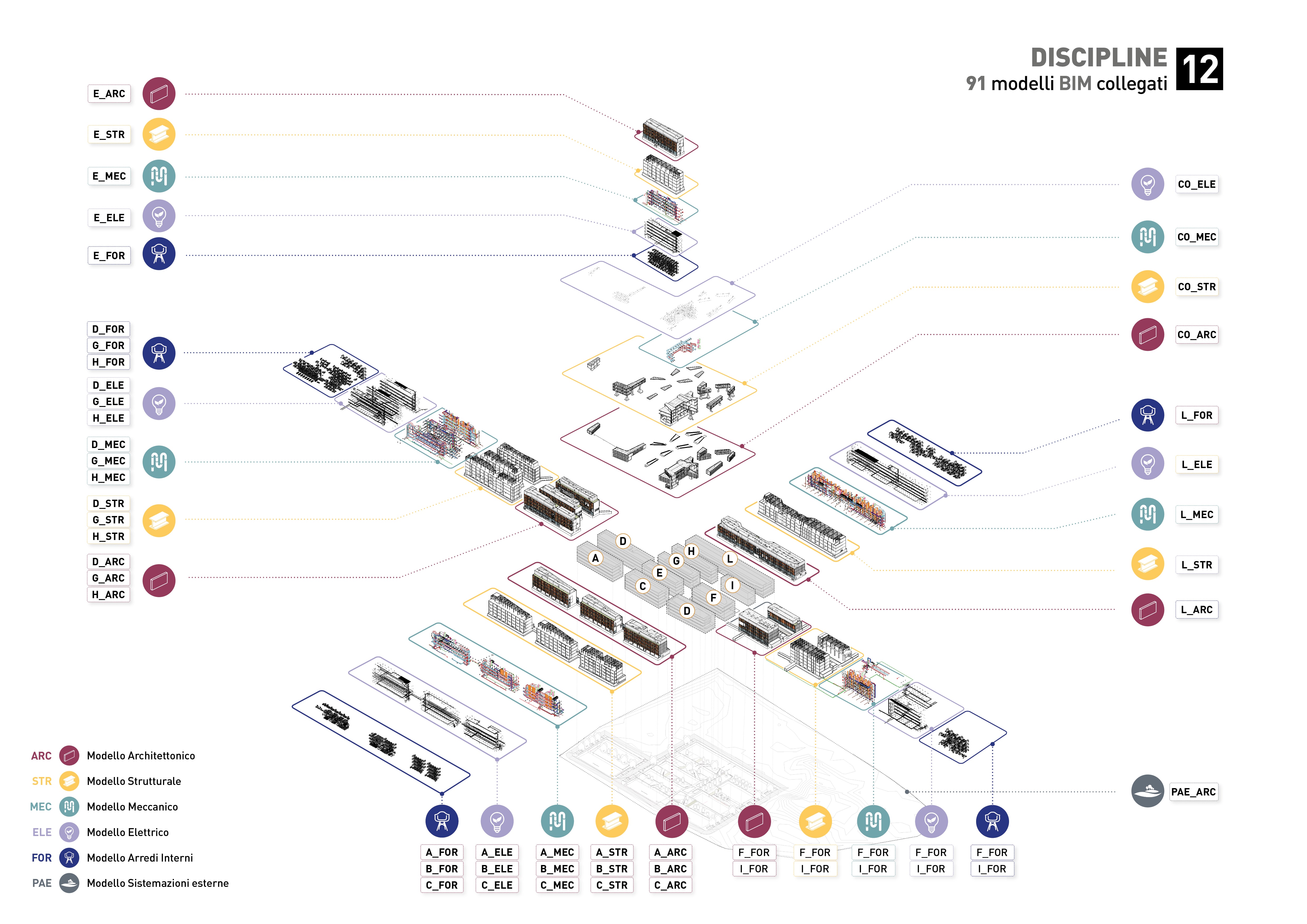 Un campus sostenibile e innovativoLa nuova sede del Dipartimento e della Scuola di Agraria.Dati salienti del progettoDirigente Area Programmazione e Sviluppo Grandi Opere: Arch. Cristina TartariResponsabile Unico del Progetto (RUP): Arch. Cristina TartariImporto di Quadro Economico: € 59.997.638,27Finanziamento: Risorse fondo edilizia universitaria D.M. 1121/2019 e cofinanziamento di Ateneo Il progetto: un nuovo HUB per la ricerca Il progetto prevede il trasferimento di alcune attività del Dipartimento di Scienze e Tecnologie Agrarie, Alimentari, Ambientali e Forestali (DAGRI) e della Scuola di Agraria da alcune sedi al Campus Sesto Fiorentino. Il primo lotto funzionale, denominato Stralcio 1A, prevede:la realizzazione completa degli Edifici C, F e G (indicati nella planimetria sottostante in rettangolo)le opere strutturali (fondazioni e piani terra) degli Edifici B ed E (riportati nella planimetria sottostante in tratteggio)la realizzazione delle opere di urbanizzazione primarie e del parcheggioPlanivolumetrico: inserimento urbanistico e individuazione dell'area di intervento Inserimento nel contesto L’intervento si organizza in un impianto urbano regolare costituito da volumi compatti, tra loro indipendenti per garantire la migliore gestione dei flussi, nonché il funzionamento dell’intera macchina architettonica. La comunicazione fra i vari blocchi avviene tramite rampe in quota e scalinate che, nel risolvere l’orografia del sito, descrivono l’insieme degli spazi aperti, occasione di incontro per docenti e studenti, ma soprattutto dispositivi bioclimatici per il miglior comfort interno. In tal senso le partizioni esterne lavorano come vere e proprie membrane tecnologiche per la regolazione della ventilazione e dell’illuminazione naturale. Lo si può vedere ad esempio nel Render dell'ingresso principale in apertura di questa pagina.L’adozione di fonti rinnovabili rappresenta un livello aggiunto in tema di sostenibilità e immagine architettonica, definendo un plusvalore in termini energetici e di qualità ambientale. Infine, il progetto è stato sviluppato in conformità con i criteri del Protocollo LEED al livello Platinum. Spazi aperti e vivibilità Grande attenzione è stata posta alla qualità degli spazi comuni. Il layout del complesso è disegnato attorno a una serie di corti interne e percorsi pedonali che favoriscono l'aggregazione. Le aree verdi non sono solo elementi decorativi, ma parte integrante della strategia di benessere e comfort ambientale per gli utenti.Vista della corte interna: spazi di relazione progettati per la sosta e lo studio all'aperto Innovazione: la progettazione BIM Vista d'insieme del modello BIM federato dell'intero complessoL'intero intervento è stato sviluppato utilizzando la metodologia BIM (Building Information Modeling). Questo approccio permette un controllo digitale completo dell'opera, dalla geometria complessa delle strutture, alla gestione delle interferenze impiantistiche, fino alla futura manutenzione. In termini di sostenibilità, la progettazione BIM è stata effettuata secondo specifici standard di modellazione consolidati nel tempo dall’esperienza e dalla pratica costruttiva. Questo approccio, approfondito fin dalle prime fasi, consente di evidenziare criticità legate a eventuali ponti termici nell’involucro oltre che guidare verso soluzioni tecniche sostenibili e compatibili con il sistema costruttivo scelto e per la funzione a cui è destinato l’edificio. Sostenibilità e bioclimatica Schema bioclimatico: analisi della ventilazione naturale, dell'irraggiamento solare e delle strategie passive adottate per il comfort termicoLa nuova sede è progettata secondo rigorosi criteri di sostenibilità ambientale. L'orientamento degli edifici, i sistemi di schermatura solare passiva e l'uso di tecnologie ad alta efficienza energetica (come il fotovoltaico e i sistemi di ventilazione naturale) contribuiscono a ridurre drasticamente l'impronta ecologica del complesso. Schemi e diagrammi Schemi e diagrammi relativi alle previsioni bioclimatiche progettuali del complesso